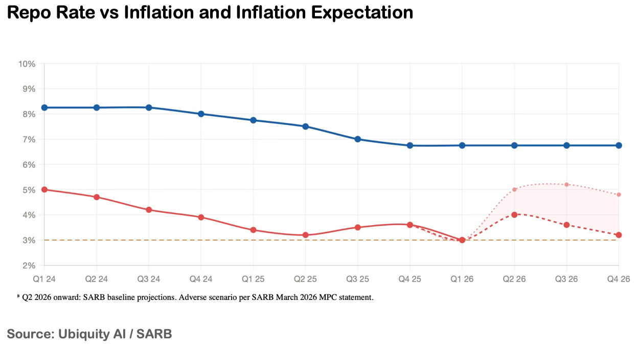 What it did not describe - because it could not - was a market about to absorb April fuel increases described as the highest ever implemented in a single month, a rand more than 6% weaker, fertiliser costs up 30%, food price inflation building a 6–12 month lag, and an interest rate environment that has been locked in place indefinitely.